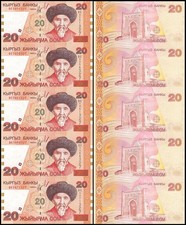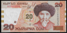 ND (2002). Dark brown and orange on multicolored underprint. Togolok Moldo at right and as watermark. Manas Mausoleum on back. As a replacement banknote with serial number prefix Z.