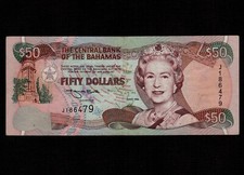 Red-brown and deep green on multicolored underprint. Lighthouse at left. Central Bank on back. Serial numbers horizontal and vertical.