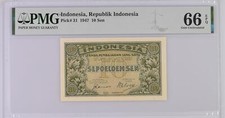 Indonesia 10 Sen 1947 P 31 Gem UNC PMG 66 EPQ