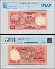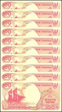 1992/1997. Pale red on orange and multicolored underprint. Sailboat Pinisi at left. Arms at upper right area. Volcano Anak Krakatau at right on back. Watermark: Ki Hajar Dewantara. Second date appears after imprint.