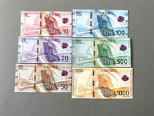 Completed Set, Macau 10-20-50-100-500-1000 Patacas 1999-2001 (BNU) UNC