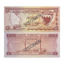 Law of 1964. Brownish-red on multicolored underprint. Ruins of the Suq al-Khamis mosque, dominated by two minarets on back.