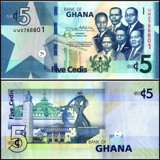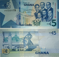 4th March, 2022. Blue on blue and multicolored underprint. Independence Arch at center, Big Six (leaders of the United Gold Coast Convention political party) at top right. National crest at bottom right. The back of this banknote features the University of Ghana and the Balme Library at center left.