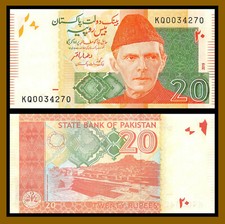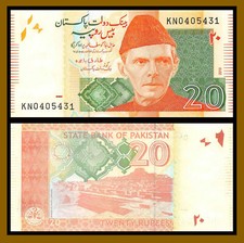 PAKISTAN 2010 20 RUPEES UNCIRCULATED BANKNOTE P-55 ALI JINNAH FROM A US SELLER