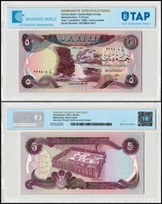 1980/AH1400; 1981/AH1401; 1982/AH1402. Brown-violet and deep blue on multicolored underprint. Gali-Ali Beg waterfall at center. Al-Ukhether castle at center on back. Watermark: Arabian horse's head.