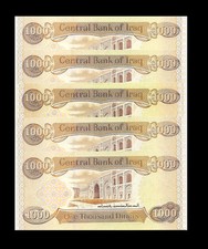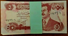 1992/AH1412. Dull red-brown on pale orange, lilac, and multicolored underprint. Temple at center. Hammurabi in conversation with the sun god Shamash at left. Tomb of the unknown soldier in center on back. Shade varieties. Dull lithographed printing. With faint indelible ink watermark. With border around embossed text at center.