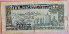 ND (1979). Deep blue-green and deep blue on multicolored underprint. Grain harvesting at left, arms at upper right. Bridge, storage tanks, and soldier on back. Watermark: stars, hammer, and sickles.