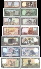 1971; 1972; 1973; 1974. Brown on light blue underprint. Columns of Baalbek on face. Jeita Cavern on back. Watermark: two eagles. Printer: TDLR.