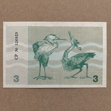 1991. Dark green and gray on blue-green, ochre, and brown underprint. Numeral with juniper branch at center on face, arms in gray at right. Two gray herons on back. With three lines of black text at center (counterfeiting clause). Watermark: large squarish diamond with symbol of the republic throughout paper.