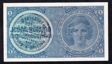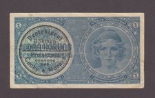 ND (1939). Blue. Liberty wearing cap at right. Back: Red and blue. Arms at left. Circular overprint: Protektorat Bohmen und Mahren, Protektorat Cechy a Morava. Overprint on Czechoslovavakia p27. Handstamp.