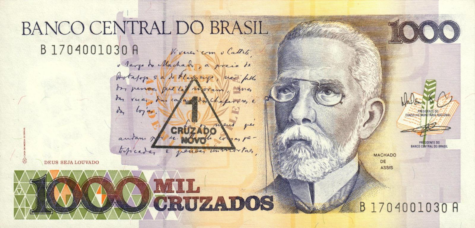 Brazil pick 216c: 1 Cruzado Novo from 1989