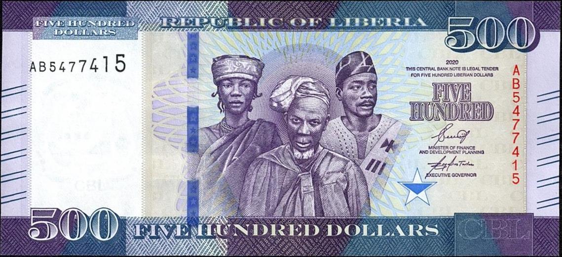 Liberia pick 36c: 500 Dollars from 2020