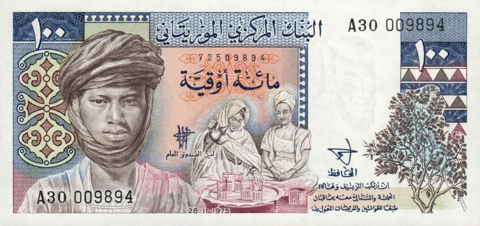 Mauritania pick 3Aa: 100 Ouguiya from 1975