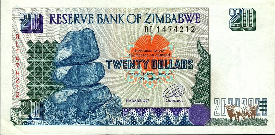 Zimbabwe pick 7a: 20 Dollars from 1997