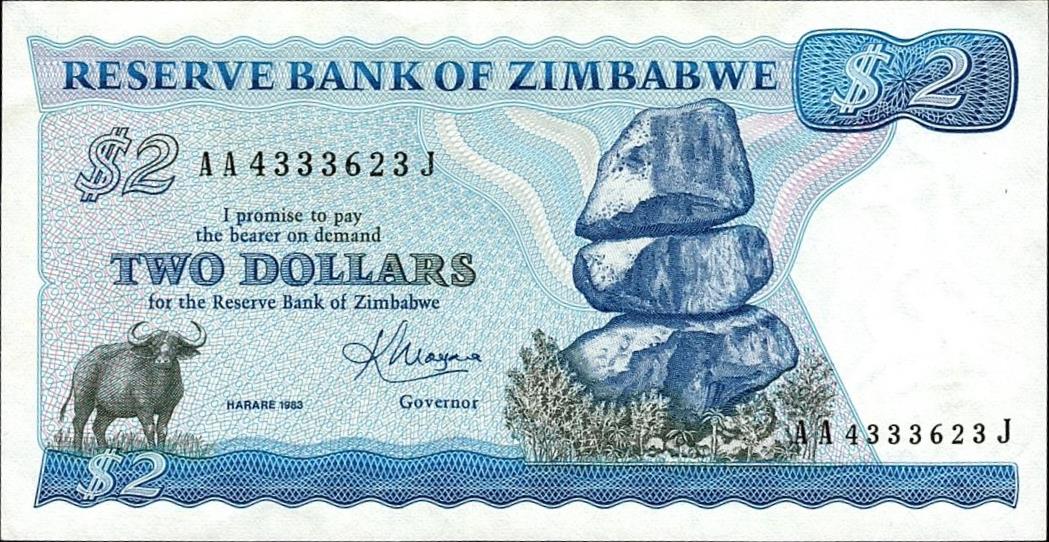 Zimbabwe pick 1b: 2 Dollars from 1983