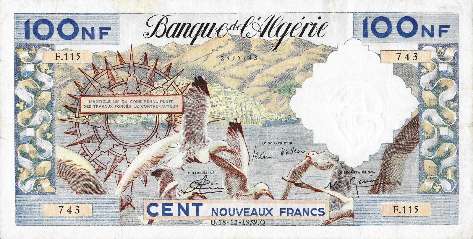 Algeria pick 121a: 100 Nouveaux Francs from 1959