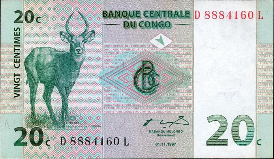 Congo Democratic Republic pick 83a: 20 Centimes from 1997