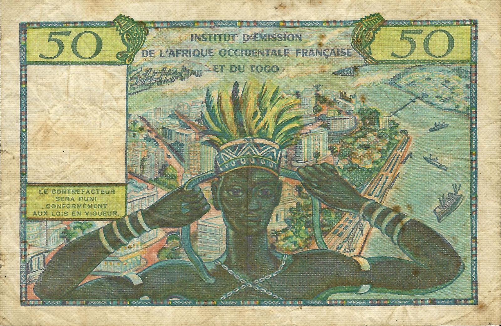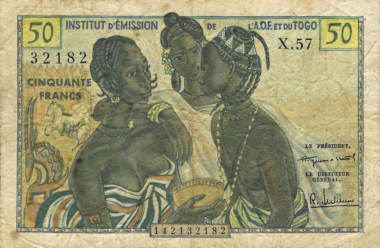 ND (1956). Black and multicolor. Three women at center. Back: Woman with headdress, city in background at center.
