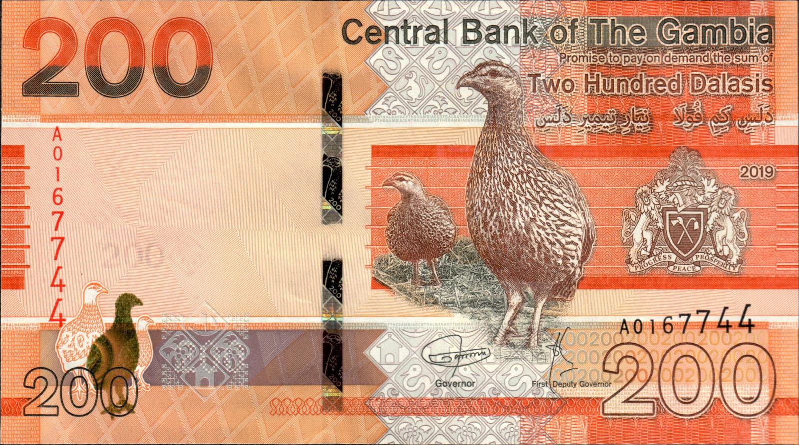 2019. Brown on orange and multicolored underprint. Bird at center right. Rice harvesting scene at left on back.