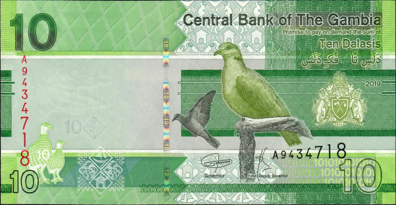 2019. Green on green and multicolored underprint. Bird at center right. Ferry scene at left on back.
