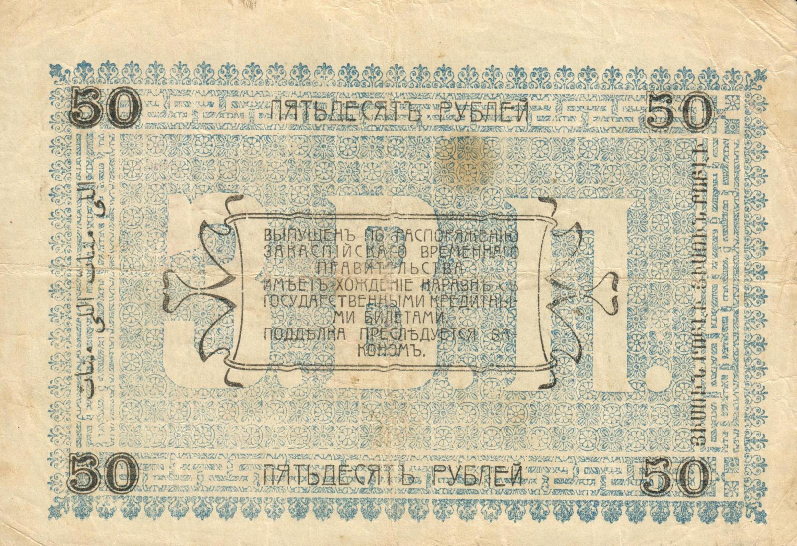 Russia - Russian Central Asia pick S1144b: 50 Rubles from 1919