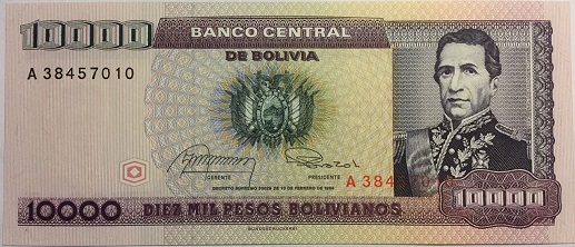 Bolivia pick 169a: 10000 Pesos Bolivianos from 1984