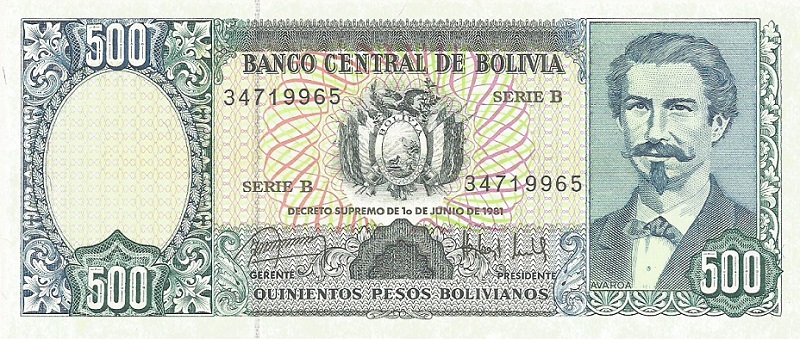 Bolivia pick 165a: 500 Pesos Bolivianos from 1981