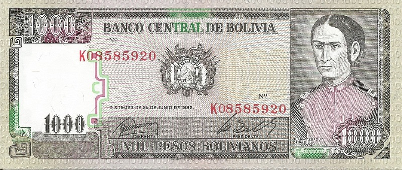 Bolivia pick 167a: 1000 Pesos Bolivianos from 1982