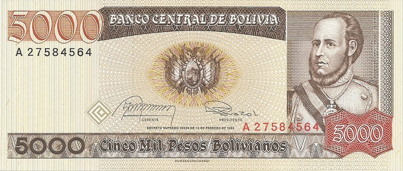 Bolivia pick 168a: 5000 Pesos Bolivianos from 1984