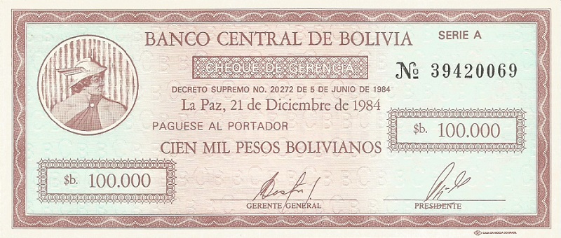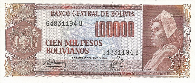 Bolivia pick 188: 100000 Pesos Bolivianos from 1984