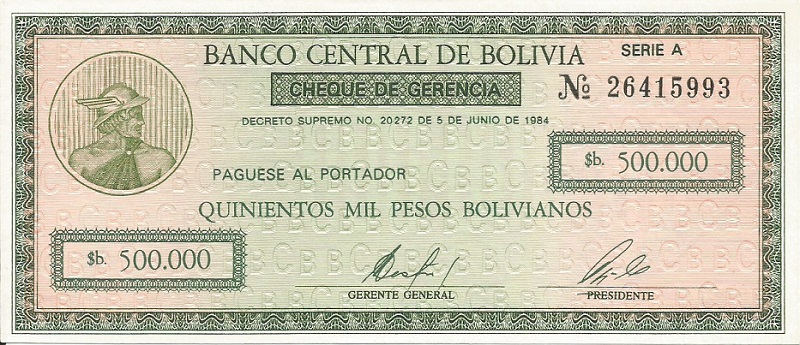 Bolivia pick 189: 500000 Pesos Bolivianos from 1984
