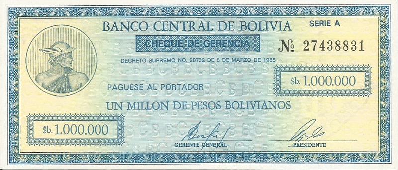 Bolivia pick 190a: 1000000 Pesos Bolivianos from 1985