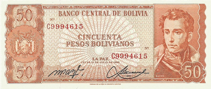 Bolivia pick 162a: 50 Pesos Bolivianos from 1962