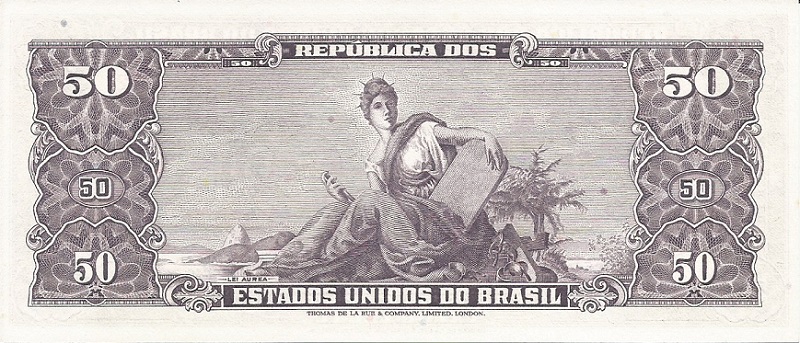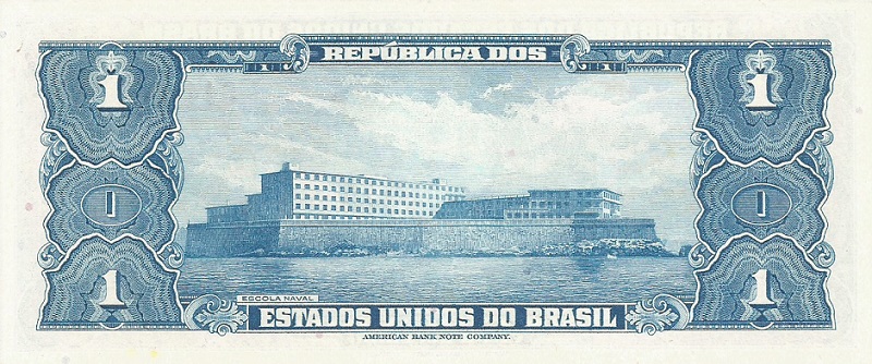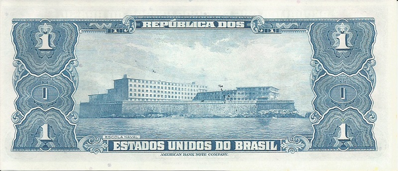 ND (1944). Blue on multicolor guilloches. Portrait Marqués de Tamandare at center. Series: number 1-1000. Hand-signed. Back: Blue.Naval school at center. Printer: ABNC.