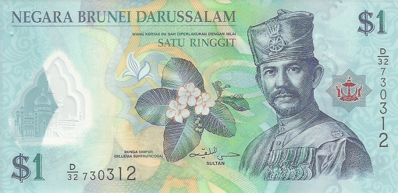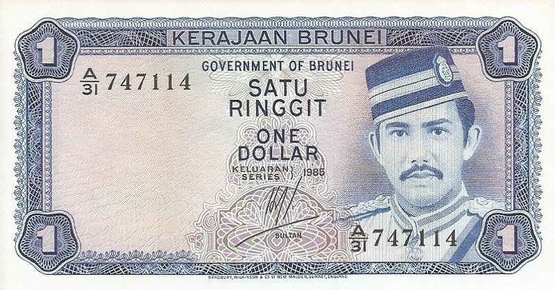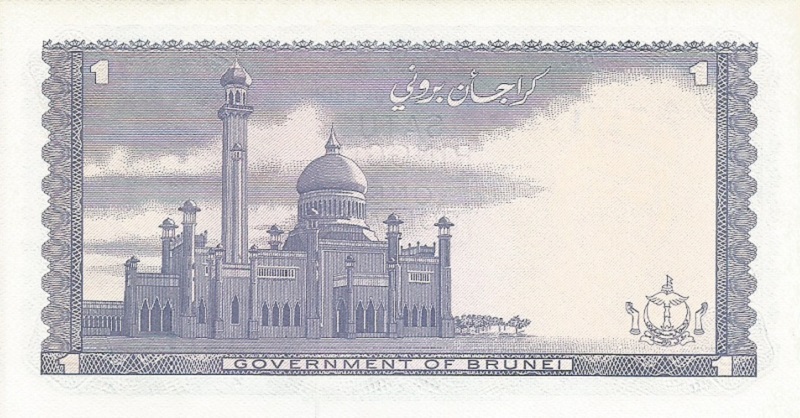 Sultan Hassanal Bolkiah I in military uniform at right and as watermark. Mosque on back. Printer: BWC.
