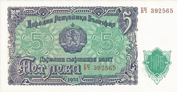 Bulgaria pick 82a: 5 Leva from 1951