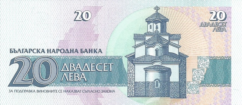 1991. Blue-black and blue-green on multicolored underprint. Dutchess Sevastokrat Oritza Desislava at left center. Boyana Church at right on back.
