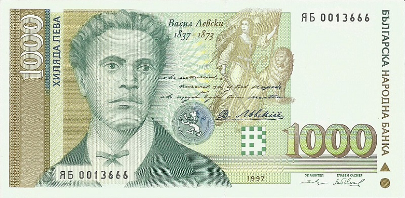 Bulgaria pick 110a: 1000 Leva Zlato from 1997