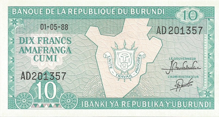 Burundi pick 33b: 10 Francs from 1986