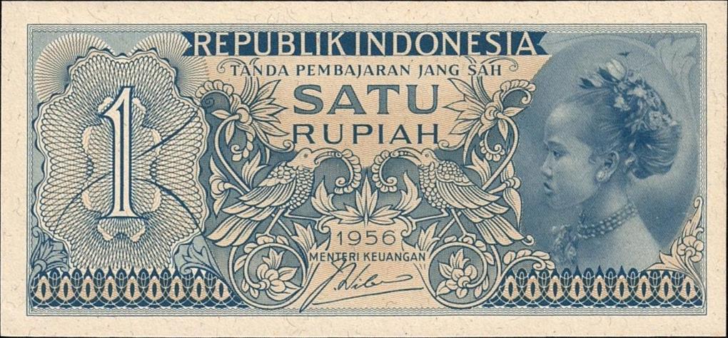 1956. Blue. Portrait Javanese girl at right. Back: Arms at center.
