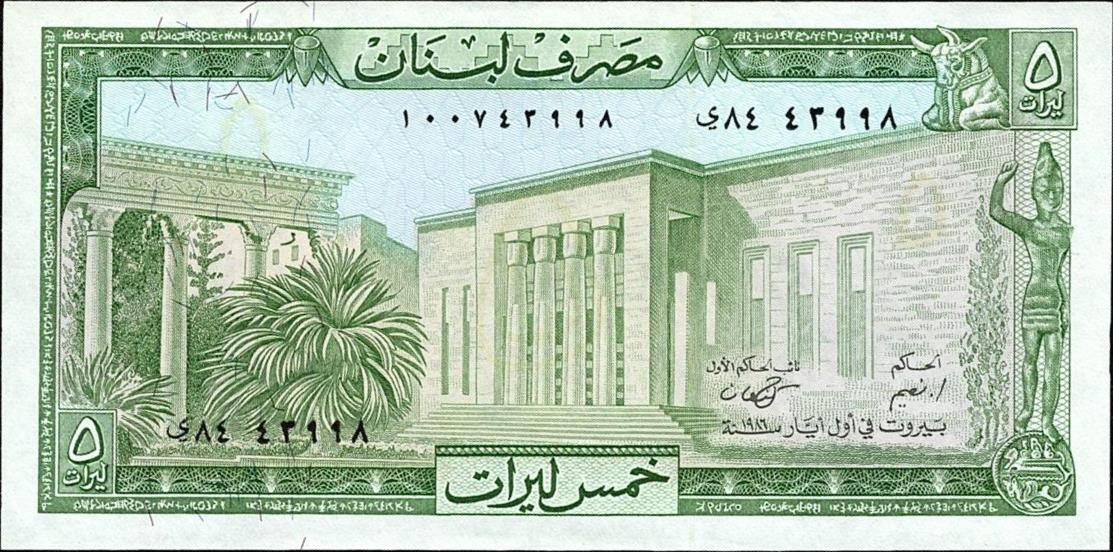 Lebanon pick 62d: 5 Livres from 1986