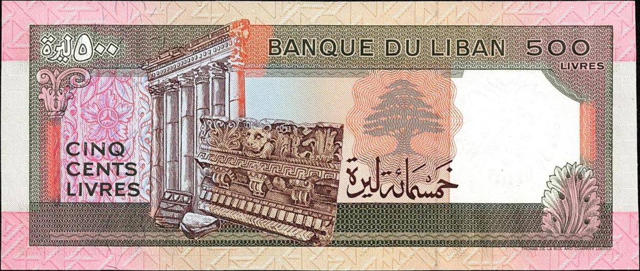 Lebanon pick 68: 500 Livres from 1988