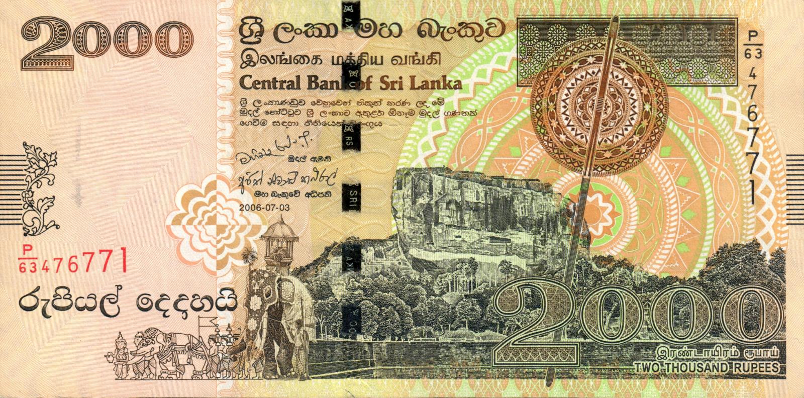 Sri Lanka pick 121b: 2000 Rupees from 2006