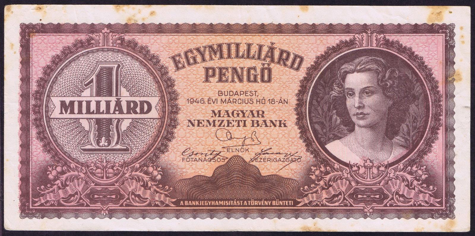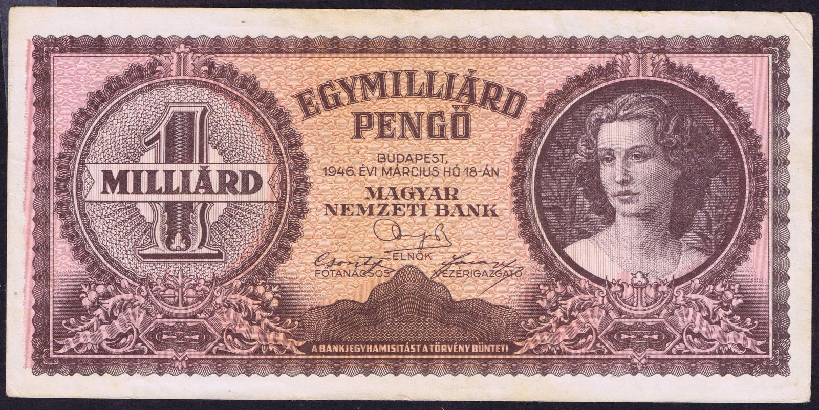 Hungary pick 131a: 1000000000 Milpengo from 1946