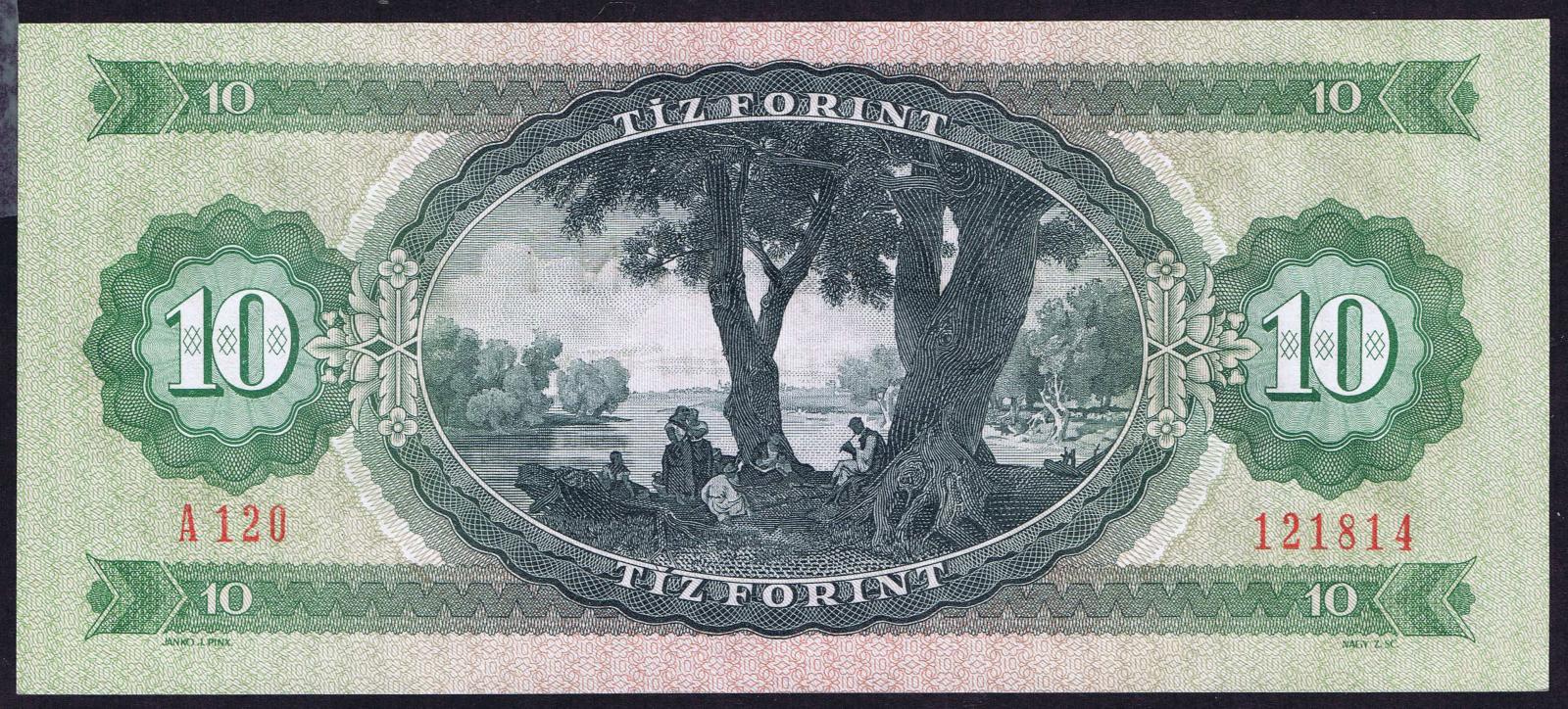 30.6.1969. Green and slate black on orange and lilac underprint. New arms and signatures. Value at left, portrait of Sandar Petofi at right. Trees and river, Birth of the Song by Janos Janko at center on back; blue-green center on back.