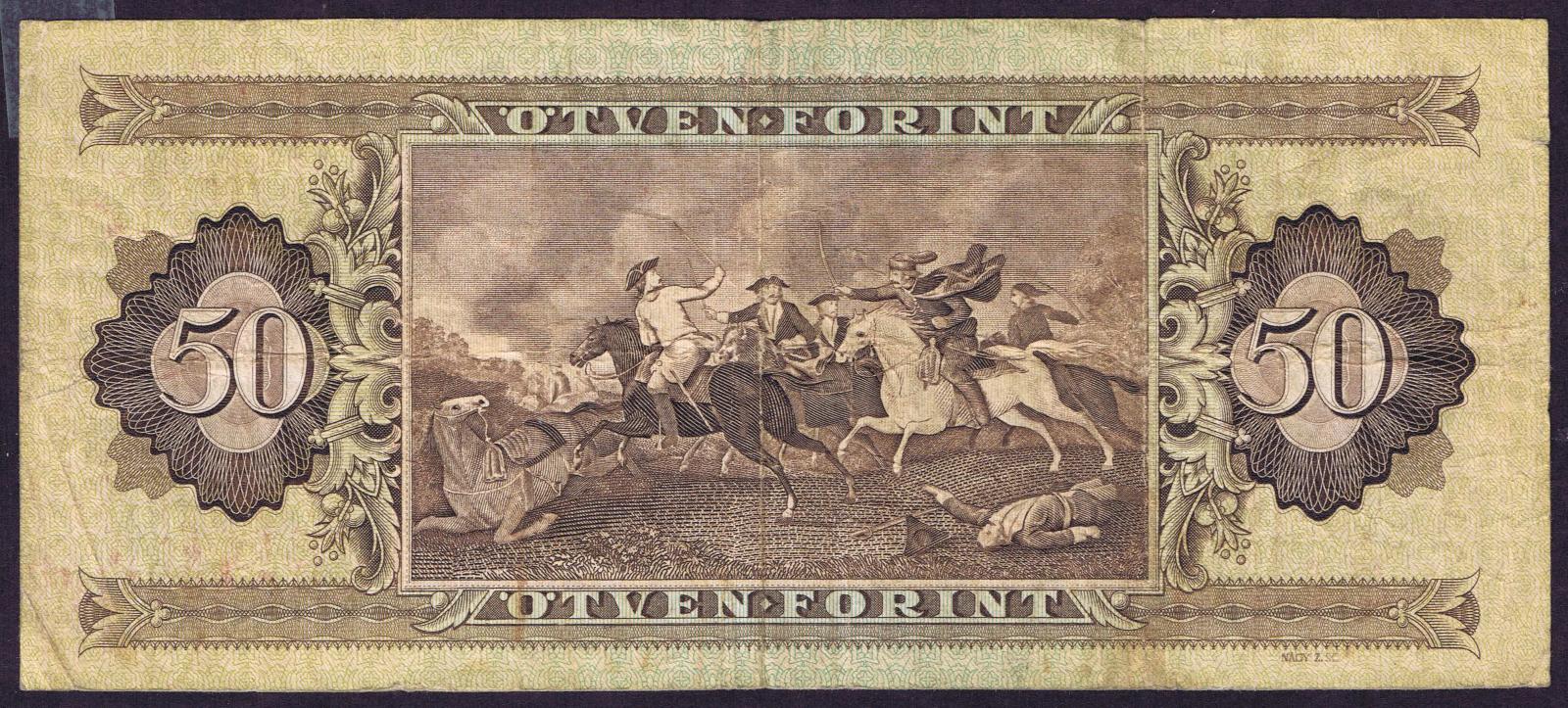 4.11.1986. Brown on blue and orange underprint. New arms and signature. Portrait of Prince Ferencz Rakoczi II at right. Battle of the Hungarian insurrection (Kuruc) against pro-Austrian soldiers (Labanc) scene at center on back.