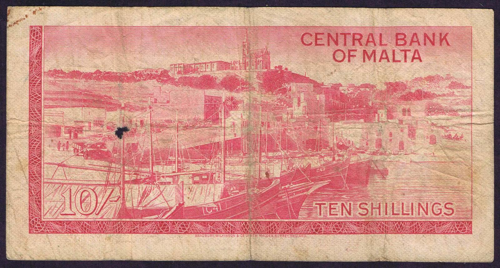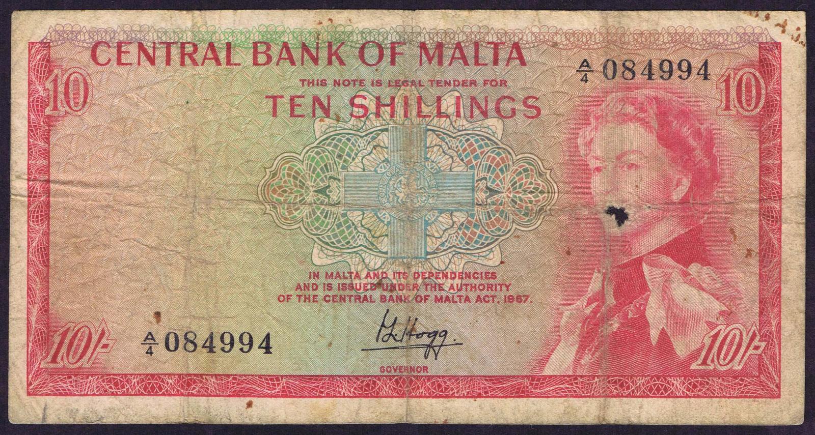Malta pick 28a: 10 Shillings from 1967