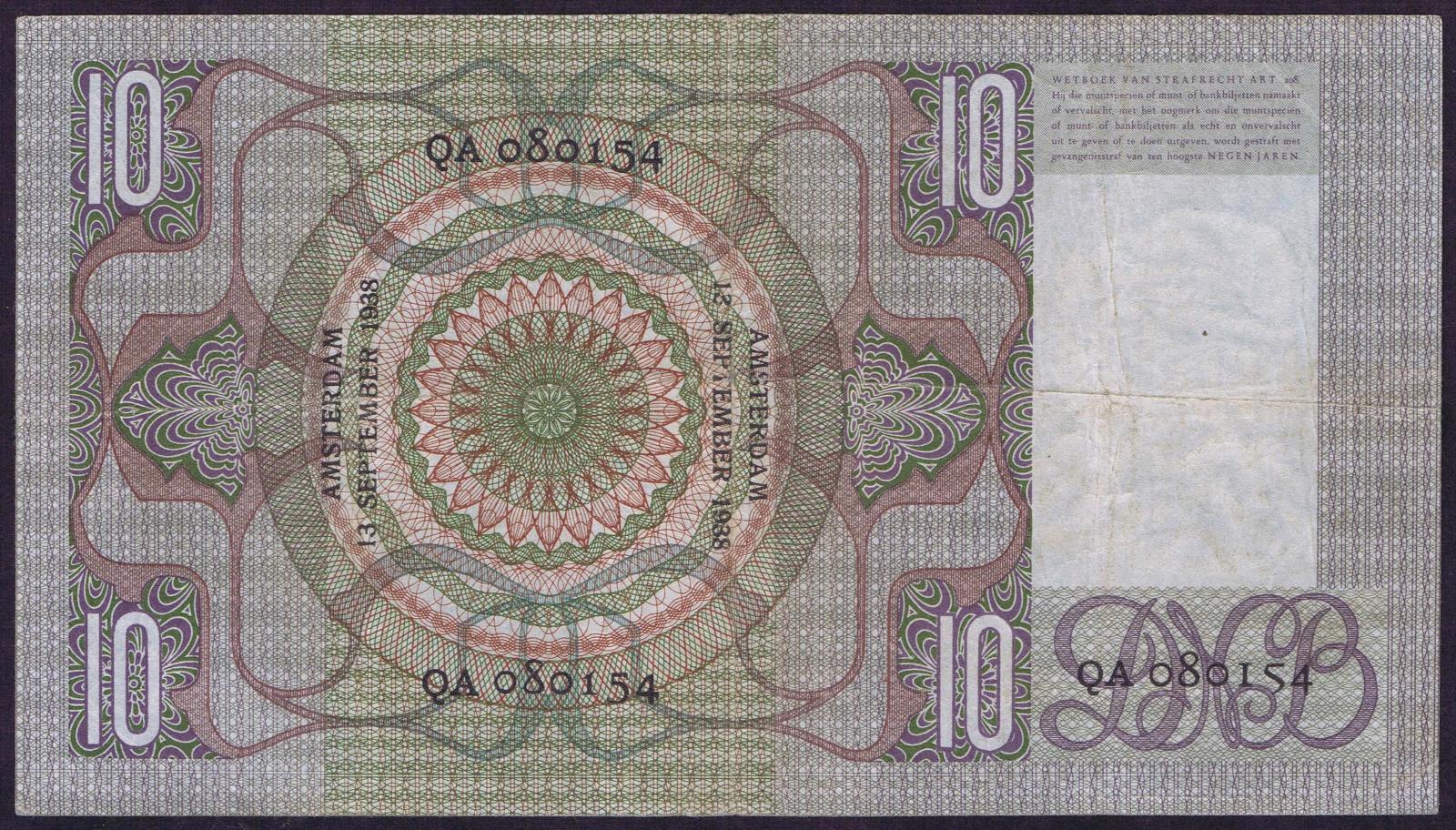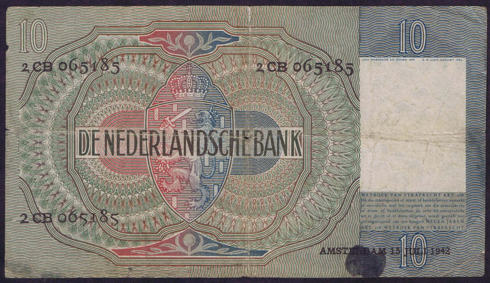 Netherlands pick 56b: 10 Gulden from 1941