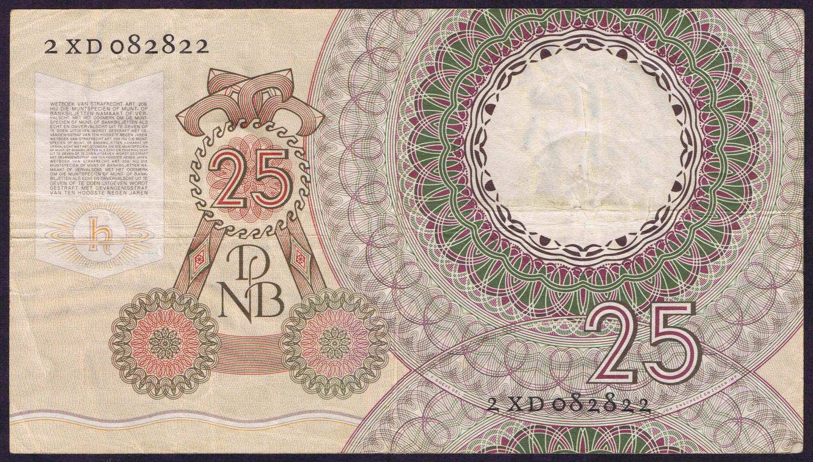 Netherlands pick 87: 25 Gulden from 1955