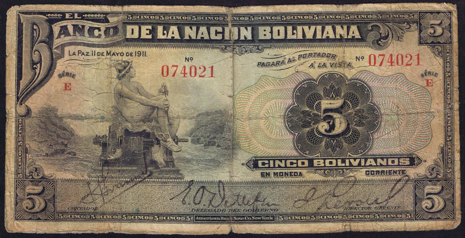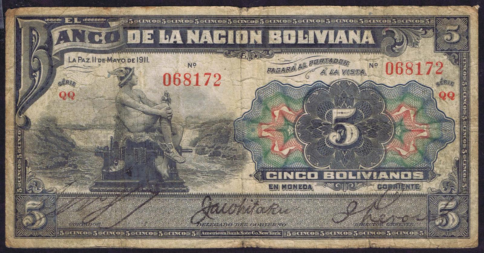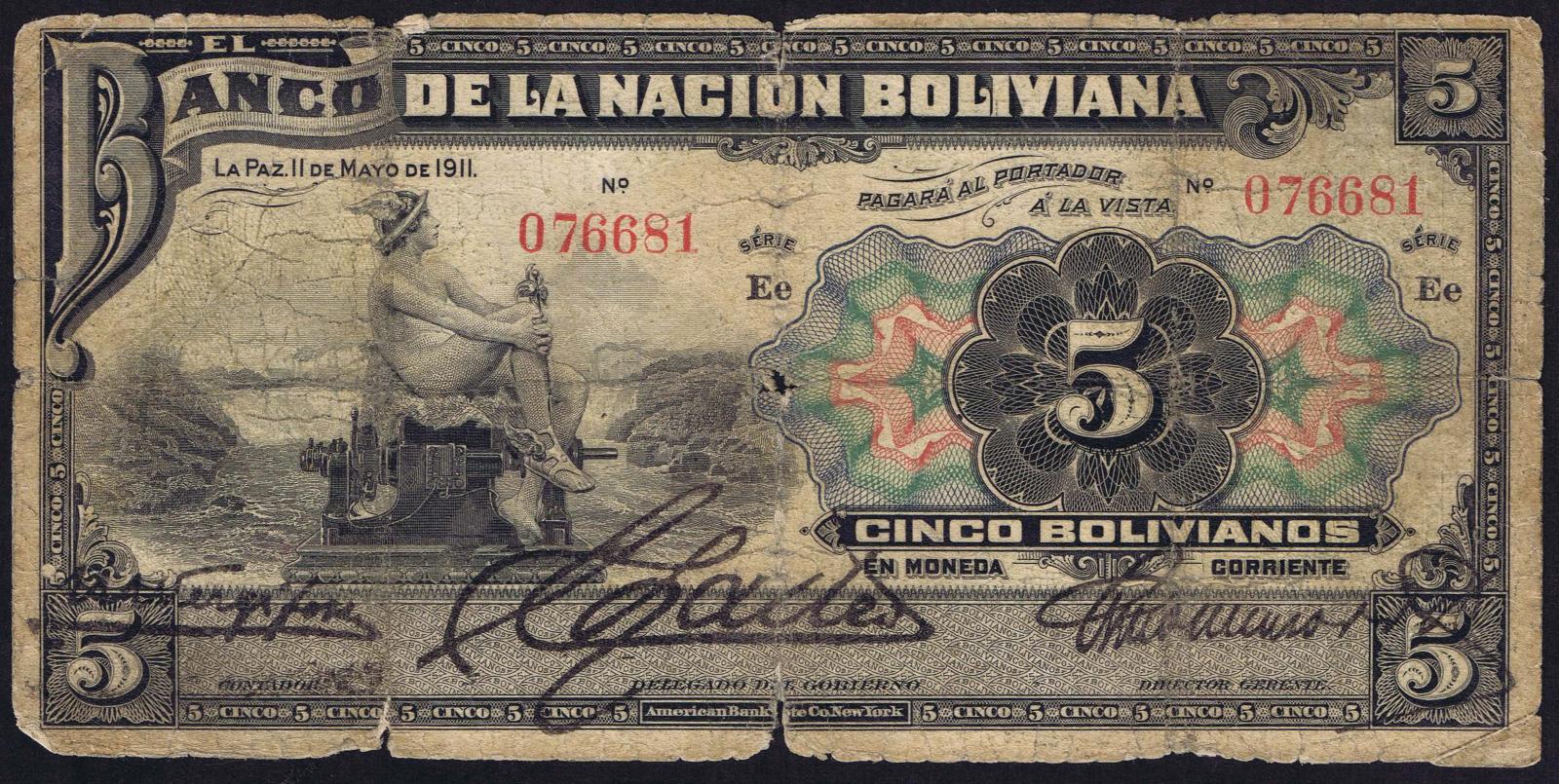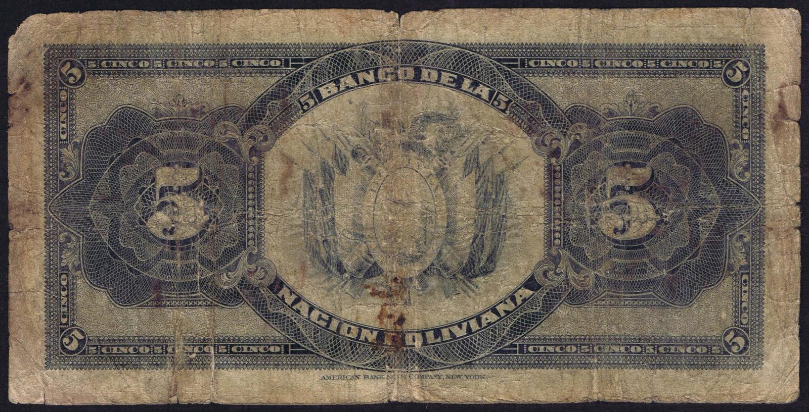 Bolivia pick 105b: 5 Bolivianos from 1911